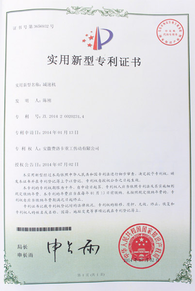 国茂股份取得外观规划专利授权:“减速机”